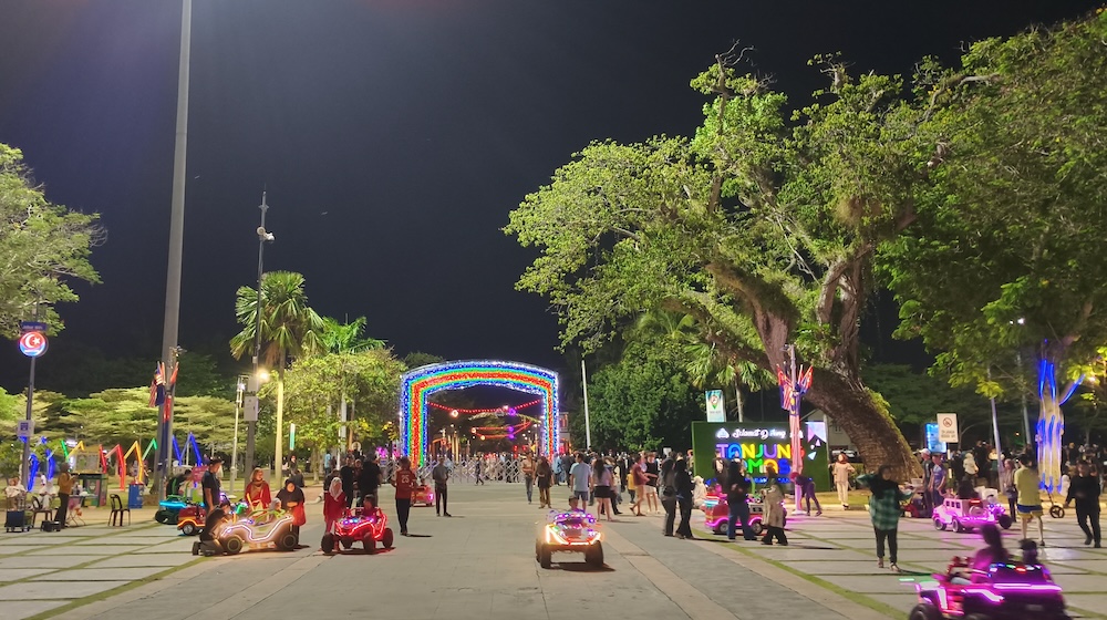 Tanjung Emas Park is a popular free tourist attraction in Muar, especially in the evenings when the park lights up and there is a cooling breeze from the river. It is a great place in Muar for the entire family. Little E enjoyed driving one of the rental battery operated vehicles around the park’s main square.