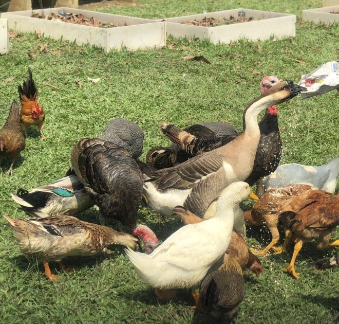 The Eco Community Park is an outdoor community park that is open to the public for FREE. You have the opportunity to interact with and learn about a variety of animals, including ostriches, goats, guinea fowls, geese, ducks, and Polish chickens.